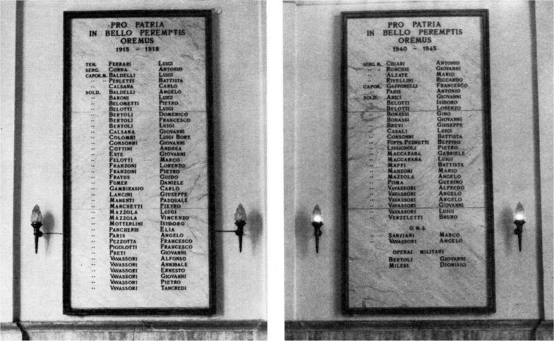 occasione, alle pareti laterali interne furono poste due lapidi con gli elenchi dei caduti in guerra,